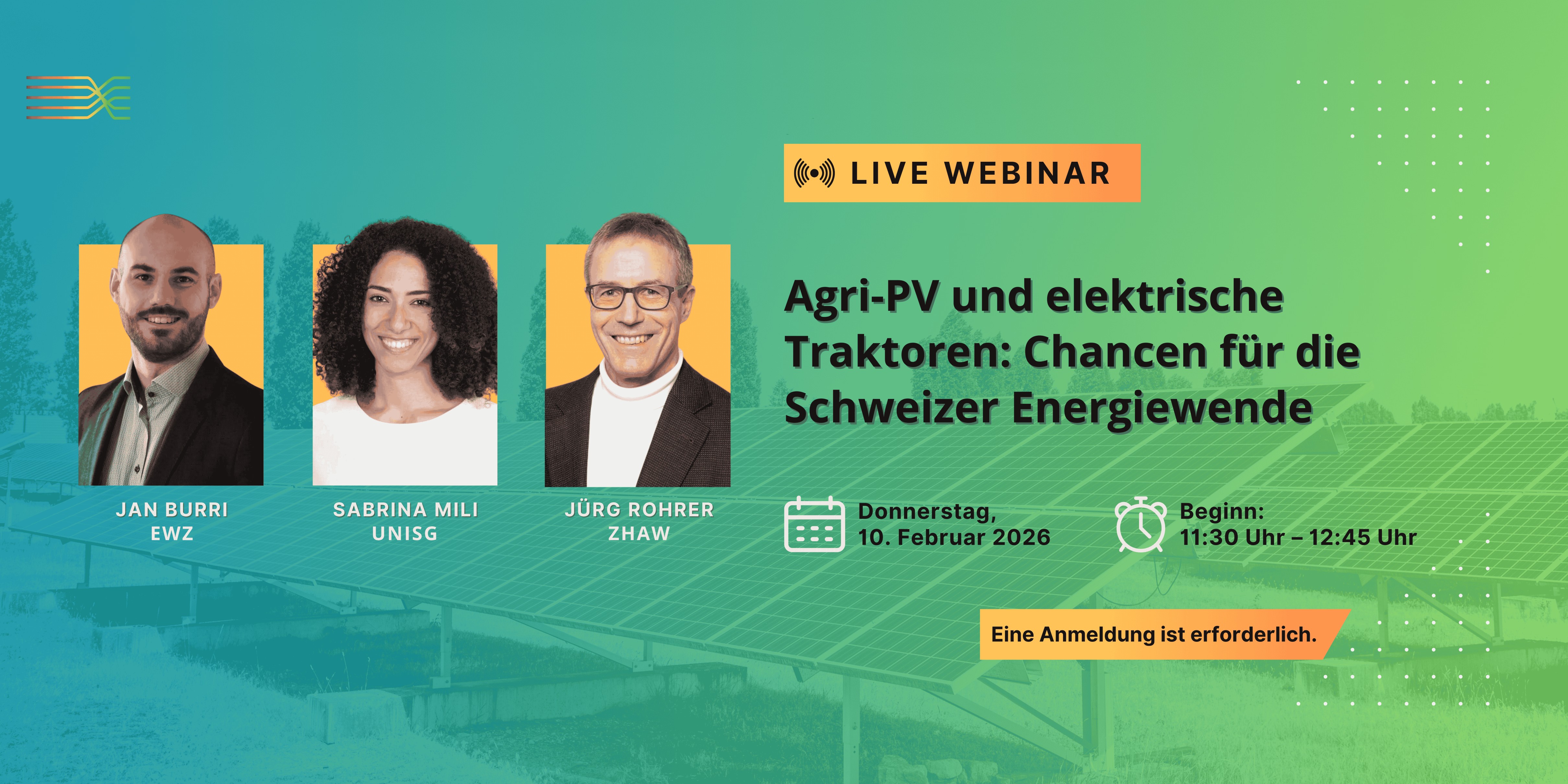This is precisely the aim of the EDGE webinar “Agri-PV and electric tractors: opportunities for Switzerland’s energy transition”. The event brings together experts from research and practice and is aimed at professionals who need to make well-founded decisions – and be able to justify them – in utilities, public authorities, project development, and agriculture.